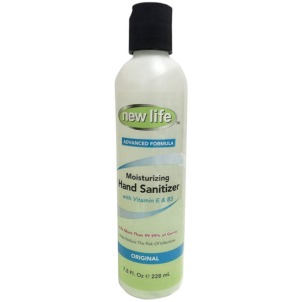 New Life moisturizing hand sanitizer, advanced formula with vitamin e, pro vitamin b5, kills more than 99.99% of most common germs that may cause illness in as little as 15 seconds. Helps reduce the risk of infections and decreases bacteria on the skin.