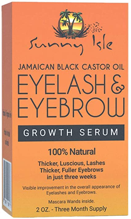 Our Sunny Isle Jamaican Black Castor Oil eyebrow, eyelash growth Serum helps boost the appearance of eyebrows and eyelashes with a simple once a day application in as little as three weeks. 100% natural. Provides thicker, luscious and fuller eyebrows in just three weeks. Gives visible improvement in the overall appearance of eyelashes and eyebrows.